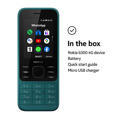 Specification: Nokia 6300 4G, functie-telefoon met eenvoudige SIM, WhatsApp, Facebook, YouTube, Google Maps, 4G en WLAN-hotspot, Google Assistant, betrouwbare prestaties en duurzaam design, cyaan